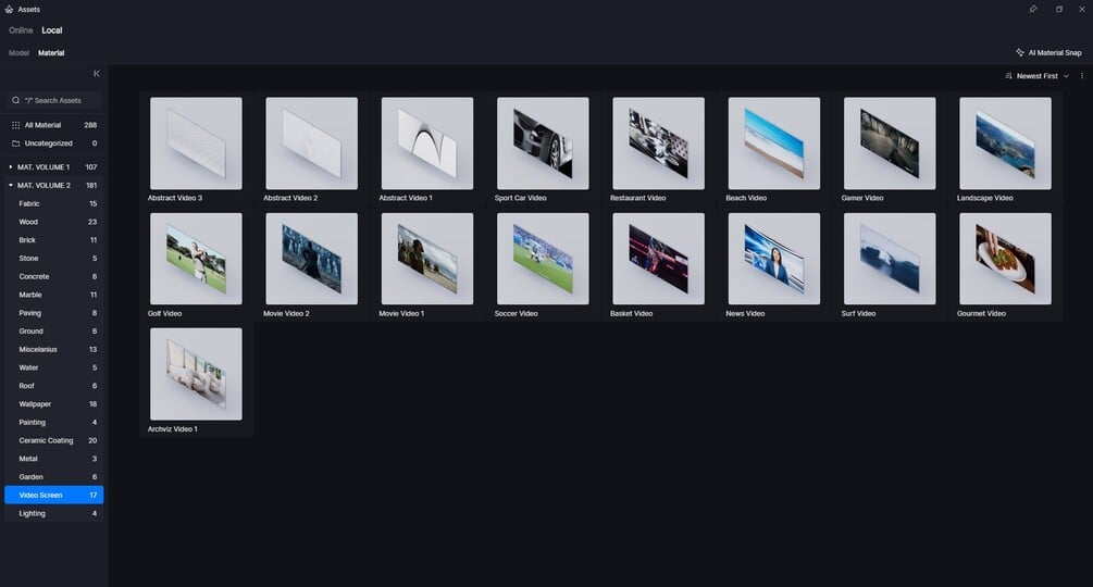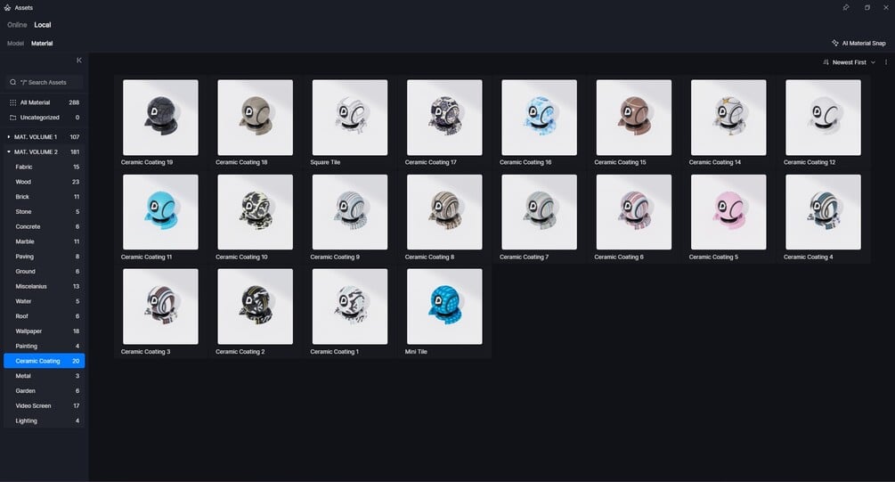 Volume 1 and Volume 2 are in one package to save you money. There are over 280 materials ready to be applied to your renders in D5 Render.